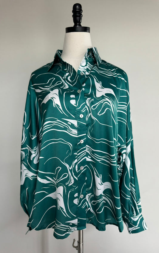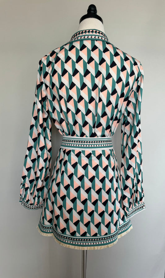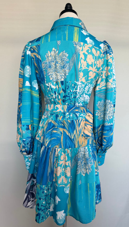 Azure Long Sleeve Self-Tie Belted Button Front Dress